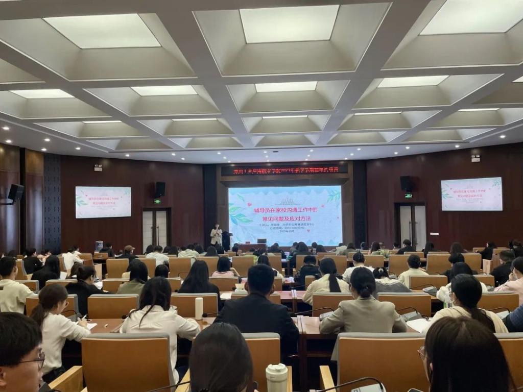 为进一步加强辅导员队伍专业化建设,切实提高辅导员心理健康教育工作技能及家校沟通能力,10月27日下午,学生处邀请了大学生心理健康中心主任李琨煜在建工楼天健厅开展了以“辅导员在家校沟通工作中的常见问题及应对方法”为主题的专题培训。各学部学管副部长、分团委书记,全体辅导员参与了此次培训。