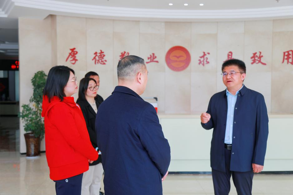 3月20日下午,郑州市医疗保障局副局长王富权,新郑市副市长王晓莹,新郑医保分局局长赵建军,副局长岳建萍等一行莅临我校调研大学生医疗保障工作。校领导闫兵、刘山玉,学生工作部有关负责人及各学部学管副部长陪同调研。