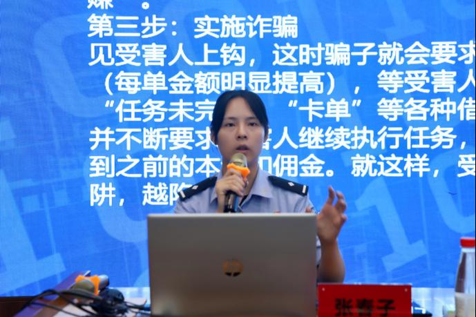 讲座中,张警官介绍了电信诈骗的概念以及电信诈骗与传统诈骗的区别。对电信诈骗的各个环节、诈骗手段和预防措施进行了详细讲解。随后,她结合近期高发的电诈案例,对刷单、贷款、冒充熟人、网络购物退款等常见诈骗手段进行了深入浅出的讲解,通过以案释法、以例示警,提出了切实有效的防范建议,希望老师们认真学习防范网络诈骗的知识,随时提高警惕性和防范心理,不断提升分辨网络诈骗的能力。