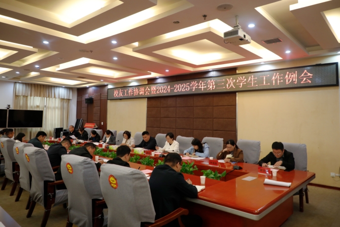 10月21日下午,我校校友工作协调会暨第三次学生工作例会在行政楼二楼西会议室顺利召开。党委副书记、副校长王美英,副校长刘山玉出席会议,学生工作部、党委组织部、宣传部、财务处、总务处等有关职能部门负责人,各学部党委书记,各学院分团委书记参加会议,会议由学生工作部部长陈晴晴主持。