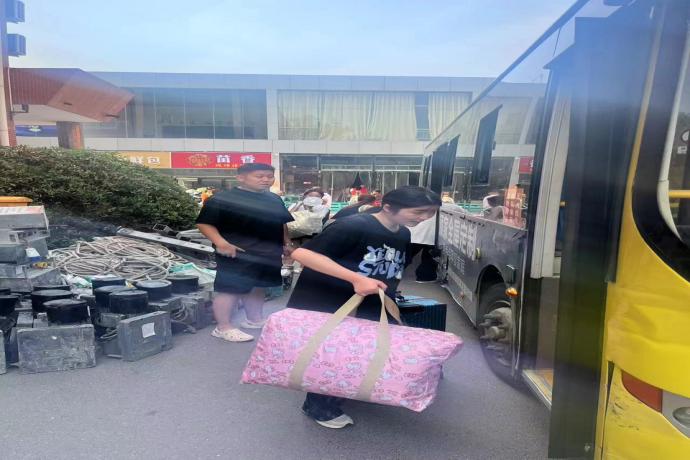 6月27日早8点,学生工作部陈晴晴部长、公寓管理处郝俊龙处长以及各学部学生管理副部长下沉一线、亲自指导搬迁工作,陈部长叮嘱学生们:在转运过程中一定要注意人身安全、财产安全;同时,天气炎热,一定要注意防暑;对于身体有特殊情况的学生,志愿者们一定要特殊照顾,避免发生意外。