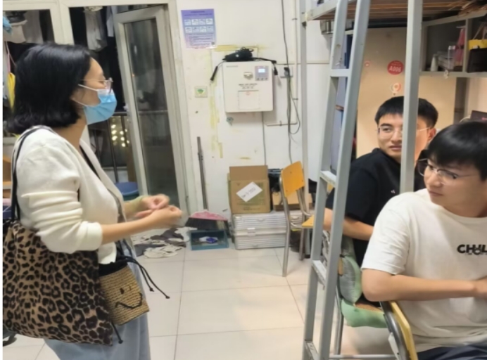 检查过程中,辅导员着重排查宿舍有无违禁物品、违规电器、私拉电线、易燃易爆物品等情况,并跟学生面对面谈心,了解学生学习及生活中是否存在困难,嘱咐同学们务必要严格遵守宿舍管理制度,筑牢安全防线,共同维护宿舍安全稳定。