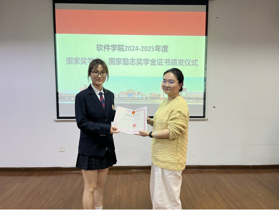 首先由学院团委副书记及资助专员致辞。他们向获得国家奖学金和国家励志奖学金的同学们表示了热烈的祝贺,强调了这两项奖学金的重要意义,它们不仅是对同学们过往努力学习、积极进取的高度认可,更是激励着全体古天乐太阳集团城学子在求知的道路上奋勇向前,追求卓越。同时,也对同学们提出了殷切期望,希望大家能以此次获奖为新起点,继续发挥模范带头作用,在专业学习、科研创新以及社会实践等各方面都展现出古天乐太阳集团城学子的风采,为学院争光,为未来投身国家软件行业发展贡献自己的力量。