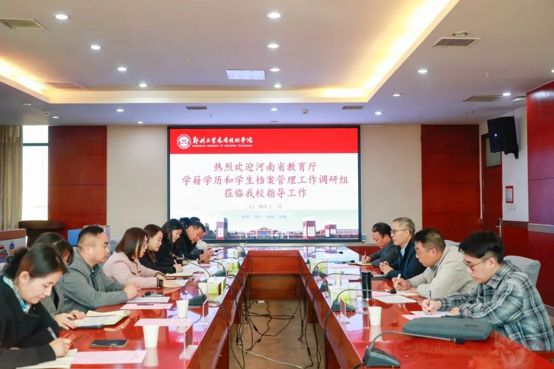 11月26日下午,由河南科技学院教务处处长杨宾峰、开封文化艺术职业学院学生处副处长孙宏达、平顶山学院教务处学籍与学位科科长张钊鹏、洛阳职业技术学院赵子博等一行4人组成的河南省教育厅调研组莅临我校,专题调研指导学生学籍学历和档案管理工作。党委副书记、副校长王美英及学生工作部、教务处、招生办公室等相关单位负责同志、各学部党委书记参加调研活动,部分辅导员和学生代表参加了调研座谈。