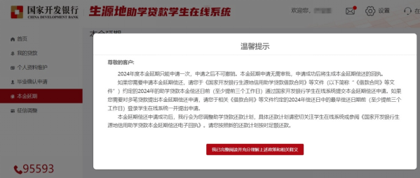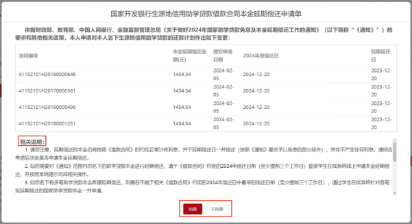 2.对处于还本宽限期的贷款学生,因2024年不需偿还贷款本金,故无需申请延期偿还贷款本金。