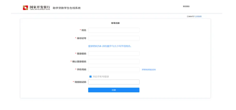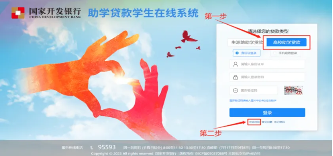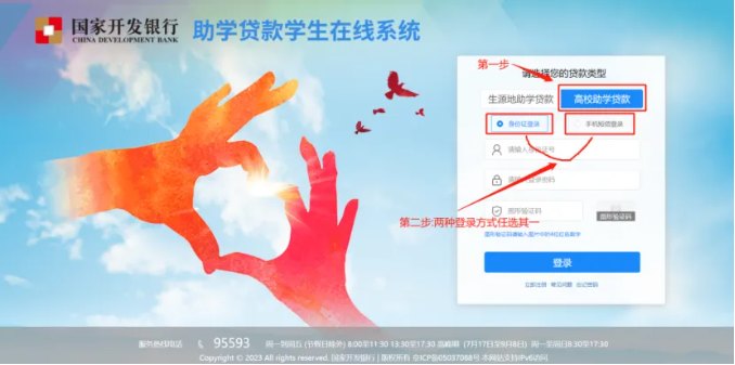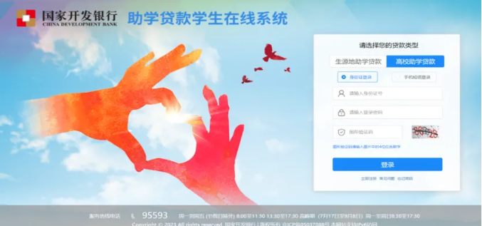 日常后续登录:在浏览器中输入网址:https://www.csls.cdb.com.cn或者在搜索引擎中搜索“国家开发银行助学贷款学生在线系统”后,选择贷款类型为“高校助学贷款”。登录方式为两种:身份证登录和手机短信登录。