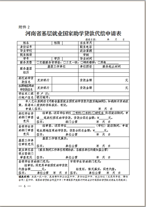 1.河南省高等学校毕业生国家助学贷款代偿申请表
