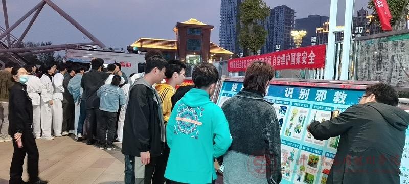 活动现场,悬挂“增强国家安全意识 防范抵御邪教渗透 自觉维护国家安全”条幅,摆放18块有关国家安全和反邪教主题宣传展板。同时,利用科普宣传车和体育中心电子显示屏循环滚动播放《国家安全普法宣传教育之<国家安全法>》、《沙画•警惕身边的邪教》等国家安全和反邪教主题宣传片,发放《认知邪教》、《邪教那些事》、《崇尚科学反对邪教》和抽纸、毛巾、水杯等反邪教宣传资料1000余份,取得了良好的宣传效果。
