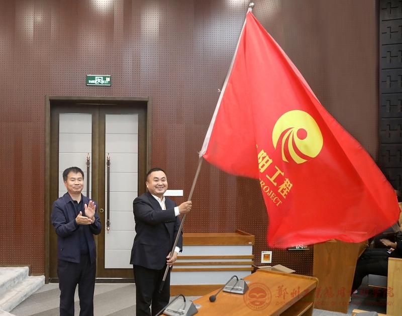图为校党委书记孙柏梁同志为旭阳工程培训班授旗