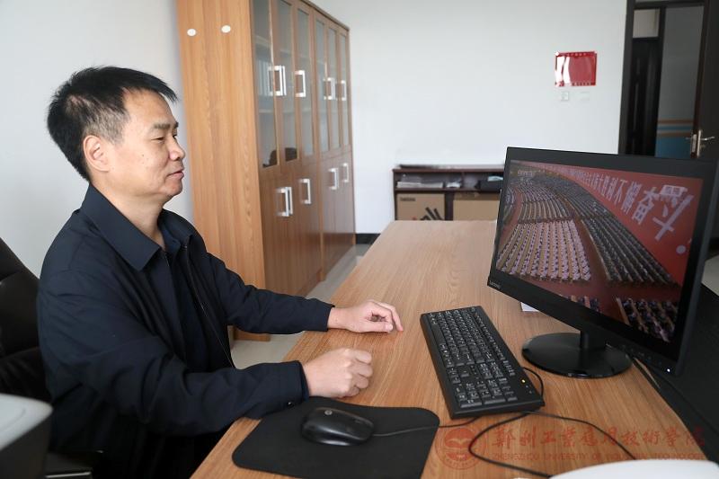 图为校党委书记孙柏梁同志观看纪念中国人民志愿军抗美援朝出国作战70周年大会直播