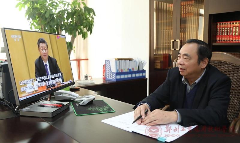 图为校长姚锡远教授观看纪念中国人民志愿军抗美援朝出国作战70周年大会直播