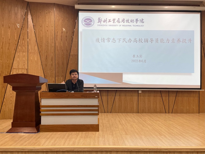 为贯彻落实《普通高等学校辅导员队伍建设规定》精神,切实培养一批素质高、能力强的辅导员队伍,6月15日上午,学生处处长崔玉宾副教授为全校辅导员作了《疫情常态下民办高校辅导员能力素养提升》的专题报告。