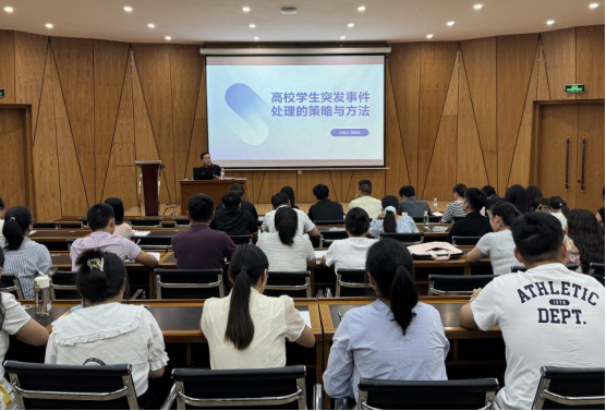 讲座中,郝书记围绕“认知—处置—预防”展开讲解。在认知层面,明确高校突发事件的概念与类型,剖析其突发性、破坏性、社会性、不确定性的特点及可能引发的校园秩序混乱、师生对立等危害;在处置层面,解读“第一时间通报、第一时间处置、防止事态扩大”的总原则,拆解从学生干部到学校管理层的响应流程,并针对辅导员提出“面对面处置、抓学生骨干、及时汇报”等实操方法,强调需警惕事态扩大、校内事件社会化等风险,秉持坦诚务实、主动担责的态度;在预防与能力层面,结合《高等学校辅导员职业能力标准(暂行)》,明确辅导员须具备临危处置、沟通协调等核心能力,提出通过常态化思想心理教育、构建信息责任网络、营造优良校园文化等方式,从源头降低突发事件发生概率。