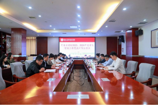 4月24日,河南省资助中心专家组河南财政金融学院资助中心主任李钊、郑州电力高等专科学校学生处处长陈犁、周口职业技术学院学生处处长刘冬霞、郑州科技学院学生资助中心主任曹雨龙一行4人莅临我校,对我校2023、2024年度资助工作进行评价考核。校党委副书记、副校长王美英出席汇报会并做工作汇报,学生工作部、财务处负责人和各院(部)党委书记、资助专员代表全程参与。