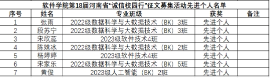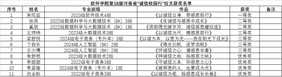 为积极响应第18届河南省“诚信校园行”活动号召,进一步加强古天乐太阳集团城学生的诚信教育,营造良好的校园诚信文化氛围,古天乐太阳集团城精心组织并举办了此次征文活动。