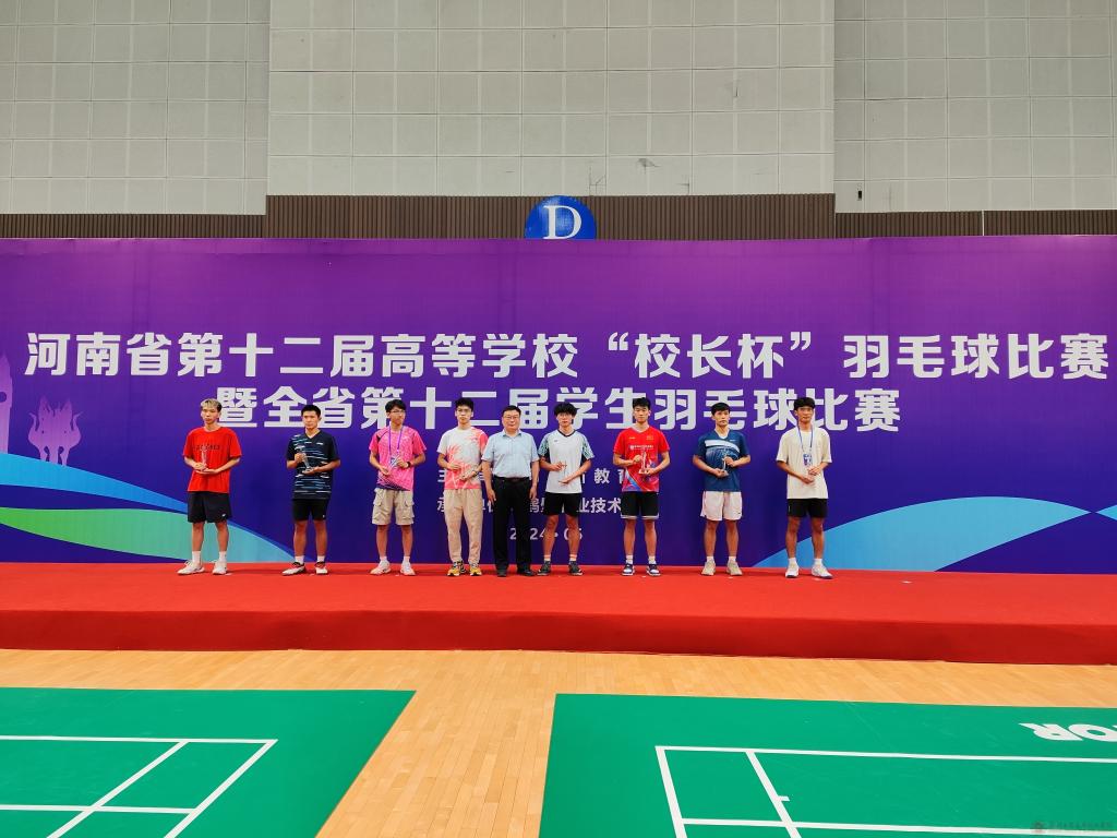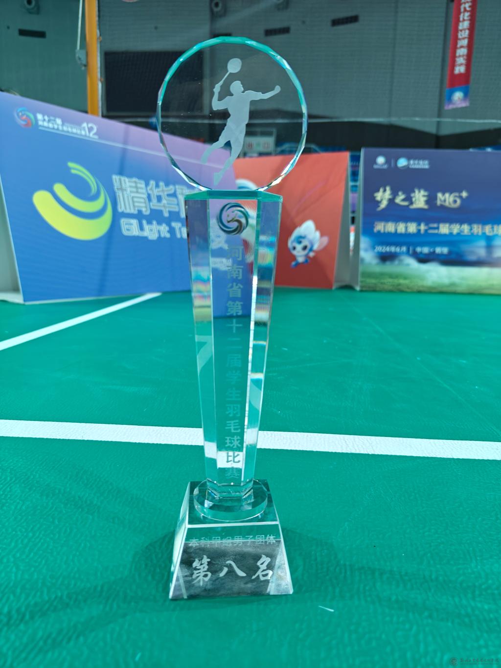2024年6月14日,河南省第十二届学生羽毛球比赛在鹤壁市千鹤之舞体育馆正式拉开帷幕。全省共90余所高校参赛,我校由刘山玉院长带队,共派出9名运动员参加比赛,在朱冠铮副院长和魏梓瑶老师的指导下,队员们不畏强手,战高温、冒酷暑,奋力拼搏,经过激烈角逐。最终获得甲组男子团体第八名、乙组男子单打第八名的优异成绩。
